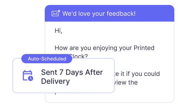 Automatically send review requests X days after purchase when customers have had time to experience your products and are most likely to respond.