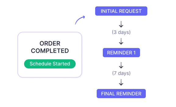 Increase review rates with automated reminder emails to non-respondents at custom intervals, capturing feedback from customers who missed your initial request.